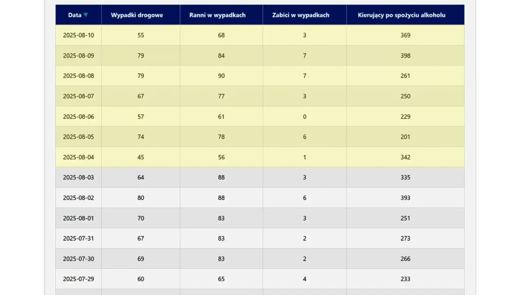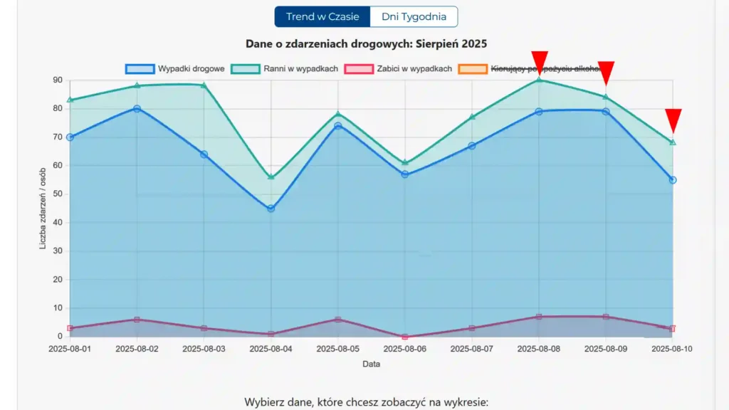 - Analiza czarnych dni: Konieczne jest zbadanie przyczyn tragicznych wypadków z piątku i soboty (8-9 sierpnia). Należy zidentyfikować, czy wystąpiła kumulacja zdarzeń na konkretnych odcinkach dróg (np. tranzytowych, turystycznych) i jakie czynniki (prędkość, typ zdarzenia) doprowadziły do tak wysokiej liczby ofiar.
